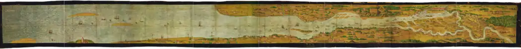 En 1567, Melchior Lorck aparece en documentos del ayuntamiento de Hamburgo, donde parece que permaneció hasta 1572; allí escribió su testamento.[10] Inicialmente, Lorck fue empleado como cartógrafo para cartografiar los pequeños afluentes que fluyen hacia el río Elba, desde Geesthacht hacia el mar, a fin de apoyar las reclamaciones legales del territorio del vecino ducado de Brunswick-Luneburgo. El impresionante mapa resultante todavía se conserva en los Archivos del Estado de Hamburgo.[11][12]