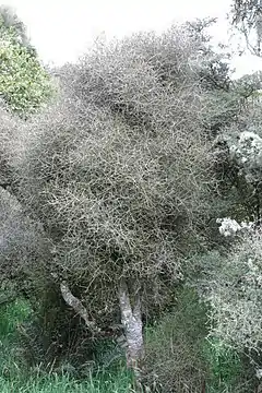 Es un arbusto o árbol pequeño, que se produce en localidades dispersas en las Isla Norte y la Isla Sur de Nueva Zelanda.