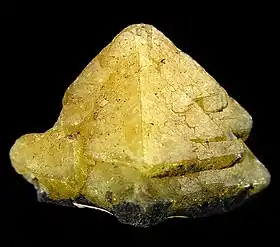 Hábito cristalino | Cristales piramidales o prismáticos largos; también en nódulos o costras masivo de grano fino | |
