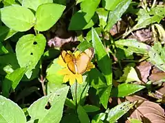 ![]() Tegosa claudina sobre una flor de (Sphagneticola trilobata) | ||