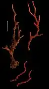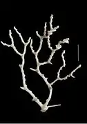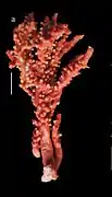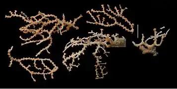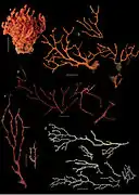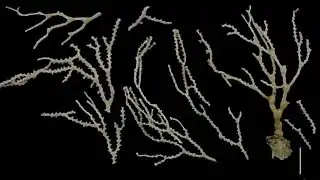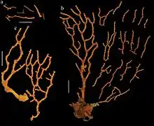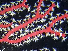 La estructura esquelética está recubierta por una masa carnosa (cenénquima), o tejido común generado por ellos, de donde salen los pólipos de 8 tentáculos, que son totalmente retráctiles, y que sobresalen de la superficie del cenénquima.[8] Tanto el cenénquima, como el tejido de los pólipos, tienen escleritas calcáreas. Las colonias alcanzan los 2 metros de altura.