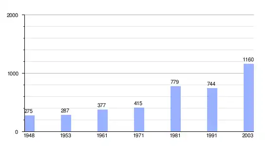 Gráfica de evolución demográfica de Meljine entre 1948 y 2003 |