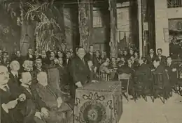 Desde el verano de 1919, los mellistas comenzaron a prepararse para una gran Asamblea Nacional, que supuestamente lanzaría un nuevo partido y establecería su curso político; aunque "Católico Nacional" fue considerado como el nombre del partido,[99] finalmente se materializó como Partido Católico-Tradicionalista.[100] Se organizaron reuniones regionales de Mellista en Vizcaya Archanda (agosto de 1919)[101] y en catalán Badalona (abril de 1920).[102] Sin embargo, como la nueva 1920 A medida que se desarrollaba, era evidente que, como antes, diferentes agrupaciones de la derecha estaban listas para concluir acuerdos circunstanciales, pero ninguno estaba dispuesto a entrar en el camino de integración hacia un nuevo partido de ultraderecha. Diferentes personalidades mellistas se inclinaban por entablar conversaciones de alianza por su cuenta, generalmente de forma puramente pragmática: algunos como Pradera negociaron con los mauristas,[103] algunos como Chicharro hablaron con los Ciervistas ,[104] algunos se acercaban a la iniciativa social-católica de los ex simpatizantes de Vázquez de Mella Aznar y Minguijón [105] y algunos se acercaron a una idea católica monárquica defendida por El Debate.[106] Las elecciones produjeron solo 2 representantesF mellistas;[107] Vázquez de Mella, quien perdió nuevamente, pronto lanzó su candidatura para el escaño en el Tribunal Supremo, pero no pudo montar suficiente apoyo entre los partidos conservadores y sufrió una derrota prestigiosa.[108]
