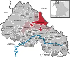 Se encuentra ubicada al norte del estado, en la región de Baja Franconia, cerca de la frontera con el estado de Turingia.