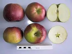 ![]() La variedad de manzana 'Melrose' en secciones cruzadas. | ||