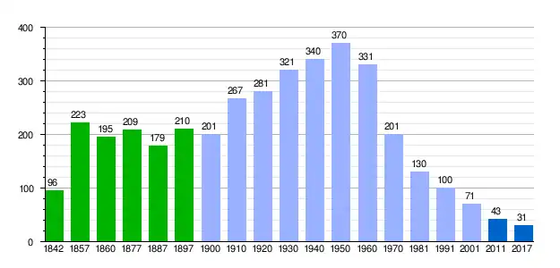 Población de derecho (1842-1897, excepto 1857 y 1860 que es población de hecho) según los censos de población del siglo XIX.[24] Población de derecho (1900-1991) o población residente (2001) según los censos de población del INE.[24] Población según el padrón municipal de 2011[25] y de 2017 del INE. |