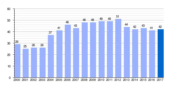 Gráfica de evolución demográfica de Mendívil[2] entre 2000 y 2017 |