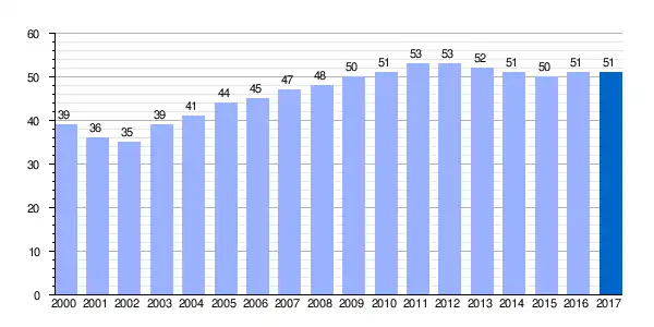 Gráfica de evolución demográfica de Mendarózqueta[2] entre 2000 y 2017 |