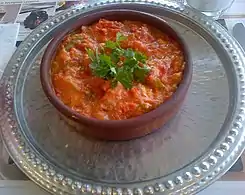 El Menemen es un tradicional plato turco,[1] que recibe su nombre por el distrito de Menemen, en İzmir,[2] y que incluye huevos, tomate, pimiento y especias, tales como pimienta negra y pimienta roja cocidas en aceite de oliva o aceite de girasol. Queso turco feta, y productos cárnicos embutidos, tales como sucuk o pastırma también puede ser añadidos. El Menemen puede ser hecho con cebolla, pero la adición de cebolla es muy debatida, y es más común cuando el menemen se come como plato principal, en lugar de incluido en el desayuno. El plato es similar al shakshuka.