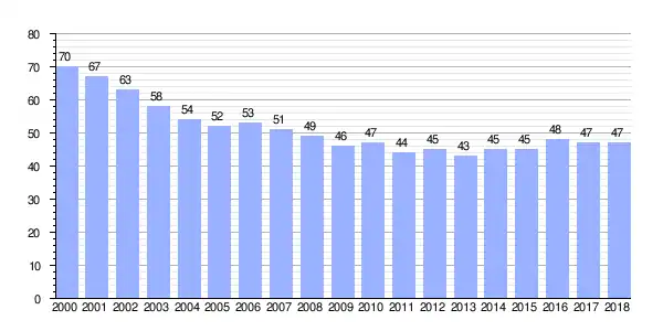 Gráfica de evolución demográfica de Menlle de Arriba entre 2000 y 2018 |