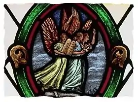 La imagen de los tres ángeles rodeando un mundo es la iglesia del antiguo símbolo. El actual logo de la iglesia Adventista del Séptimo día tiene tres llamas que rodean el globo, que representa el Espíritu Santo; el triple de la llama es también un símbolo de los tres ángeles.