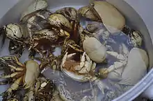La mentalidad de cangrejo, a veces conocida como cangrejos en la cubeta (también barril, canasta u olla) o cangrejismo , es una forma de pensar mejor descrita por la frase, "si no puedo tenerlo, tú tampoco ".[1] La metáfora se refiere a una cubeta con cangrejos donde individualmente estos animales pueden escapar con facilidad de la cubeta, pero en su lugar, se describe como los cangrejos se sabotean agarrándose entre ellos en una competencia inútil para que ninguno pueda escapar, asegurando la destrucción del colectivo.[2][3][4][5] La analogía en el comportamiento humano se afirma que los miembros de un grupo intentarán negar o disminuir la importancia de cualquier miembro que logra éxito más allá de los demás, por envidia, despecho, conspiración o sentimientos competitivos, para detener su progreso.[6][7][8][9][10]