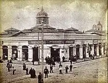 Las obras de construcción del Mercado Central de Santiago —que vino a reemplazar a la antigua plaza de Abastos, destruida por un incendio en 1864— se iniciaron en 1869. El diseño elegido para el edificio, llevado a cabo por Edward Woods y Charles Henry Driver,[5] fue una planta cuadrada definida por una estructura central de fierro. Fundida en Glasgow (Escocia) por la compañía de ingeniería Messrs Laidlaw & Sons,[5] cubría una plaza interior dejada por el perímetro de una estructura de albañilería en ladrillo de arcilla cocida, cuyo diseño fue obra del urbanista Manuel Aldunate y Avaria.