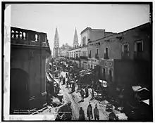 A principios del siglo XIX la ciudad necesitaba un mejor abastecimiento de varios productos, en especial los agrícolas. El ayuntamiento vio la posibilidad de instalar un mercado en las ruinas del antiguo hospital. Las ruinas que aún existían fueron acondicionadas para locales comerciales y el resto del terreno abierto fue convertido en la Plaza Venegas en honor al virrey Francisco Xavier Venegas. Fue en esta plaza donde fue ejecutado el insurgente José Antonio Torres. Posteriormente surgió un tianguis en la plaza. Las malas condiciones higiénicas en las que se encontraban llamaron la atención del gobernador Ramón Corona.[6]