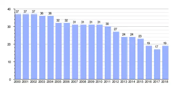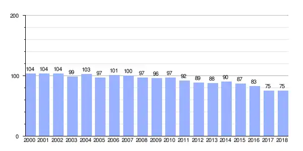 Gráfica de evolución demográfica de Mercurín (parroquia) entre 2000 y 2018 |