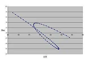 Trayectoria retrógrada aparente del planeta Mercurio entre 15 de agosto de 2009 y 15 de septiembre de 2009