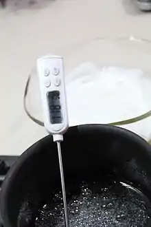 El almíbar debe alcanzar el punto de bola blanda, que se consigue cuando al echar una gota de éste almíbar en un vaso de agua fría y cubitos, no se disuelve, y en el fondo del vaso queda un sedimento pegajoso, semiduro y moldeable, como una bolita de chicle. Si el almíbar está demasiado espeso, o líquido, el merengue no se montará bien. También puede comprobarse la temperatura con un termómetro, para que el almíbar esté a 115-120 °C (suele alcanzarse esa temperatura aproximadamente a los quince minutos de ponerlo en el fuego). Si se supera la temperatura adecuada, puede quemarse.