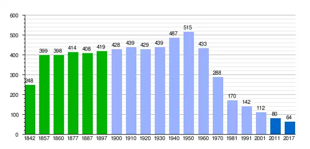 Población de derecho (1842-1897, excepto 1857 y 1860 que es población de hecho) según los censos de población del siglo XIX.[6] Población de derecho (1900-1991) o población residente (2001) según los censos de población del INE.[6] Población según el padrón municipal de 2011[7] y de 2017 del INE. |