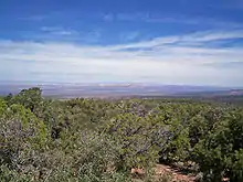 La Meseta de Kaibab se encuentra en el norte del estado de Arizona en el suroeste de Estados Unidos. La meseta forma parte de la Meseta del Colorado. Colinda al sur con el Gran Cañón y alcanza los 2817 metros sobre el nivel del mar. La meseta se divide entre el Bosque Nacional de Kaibab y la zona del borde norte del Parque nacional del Gran Cañón. La meseta está densamente poblada por especies de árboles tales como álamos, píceas, abetos, pino real americano, enebros y pinos piñoneros, contrastando fuertemente con las áridas tierras bajas que lo rodean. Los límites del este y del oeste de la meseta están conformados por cañones tributarios del río Colorado, y el límite norte de la meseta consiste en una serie de acantilados elevados. Los bosques frescos albergan a la Ardilla de Kaibab, una especie endémica a esta zona. También hay otros animales como ciervos y coyotes. Las nevadas del invierno pueden ser muy fuertes (a veces en exceso de 500 cm).[1]