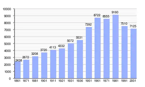 Gráfica de evolución demográfica de Mesoraca entre 1861 y 2001 |