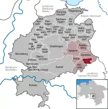 Se encuentra ubicado a poca distancia al este de la frontera con el estado de Renania del Norte-Westfalia, y al oeste de Hannover, la capital del estado.