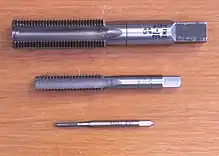 Existen muchos procesos de roscado, entre los que se incluyen: el corte de roscas con un macho o matriz, el fresado de roscas, el corte de roscas de un solo punto, el laminado de roscas, el laminado y conformado de raíces en frío y el rectificado de roscas. Un macho se utiliza para cortar una rosca hembra en la superficie interior de un agujero preperforado, mientras que un troquel corta una rosca macho en una varilla cilíndrica preformada.
