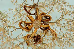 Las colonias conforman estructuras en forma arbórea. La estructura del axis consiste en un tallo, en cuyo extremo crecen las ramas, subdivididas en ramificación dicotómica. Las colonias juveniles presentan ramas a lo largo de todo el tallo, desapareciendo estas ramas con el crecimiento, y siendo visibles en su lugar, tan sólo cicatrices en el tallo, que sólo presentará las ramas en su extremo superior, cuando los ejemplares coloniales son adultos.[1]