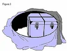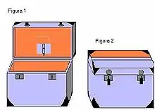 El baúl está preparado de tal modo que pueda presentarse a una inspección rápida. La tapa del baúl está dividida en dos por un listón central de madera. Dicho listón de madera oculta el hecho de que la parte posterior de la tapa del baúl esta articulada con el centro. Mirando el baúl desde afuera, la mitad posterior de la tapa del mismo se dobla hacia adentro como una escotilla (figura 1).