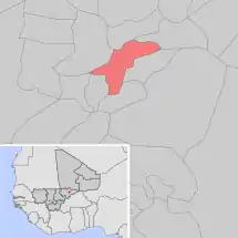 Se encuentra ubicada en el centro del país , cerca del río Níger, de los acantilados de Bandiagara y de la frontera con Burkina Faso.