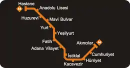 El Metro de Adana (turco: Adana metro ağı) es el sistema de metro de Adana, la quinta ciudad de Turquía. En la actualidad, el sistema se compone de una línea de metro de 14 km de longitud y que recorre de sur a norte la ciudad. Con un total de 13 estaciones, transporta 21600 pasajeros por hora y trayecto. Toma un total de 21 minutos de recorrido incluyendo las paradas en las estaciones.
