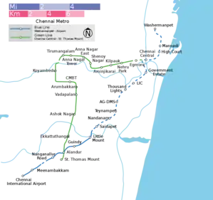 El Metro de Chennai (en hindi, चेन्नई मेट्रो) es un sistema de metro de la ciudad de Chennai, capital de Tamil Nadu, en India. El desarrollo del proyecto se efectuará en dos fases. La fase I consta de dos ramales con una longitud total de 45 km. La primera línea de la Fase I, de 10 kilómetros, se libró al servicio público el 29 de junio de 2015.[1][2]