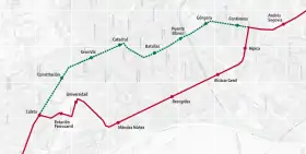 - Mapa esquemático de la primera línea del Metropolitano de Granada