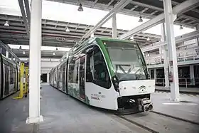 El Metro de Granada es un sistema de metro ligero al que dan servicio 15 unidades del modelo Urbos 3 fabricados por CAF, los cuales disponen de cinco módulos con una longitud total de 32 metros y capacidad para 221 pasajeros cada uno.[40] El interior de los ferrocarriles es de piso bajo, con entradas accesibles a discapacitados, carritos de bebé y bicicletas. Las cabinas montan a bordo un sistema para modificar la posición de las agujas y poder crear itinerarios desde la cabina de conducción. Además, incluyen freno dinámico con recuperación de energía a la red.[40]