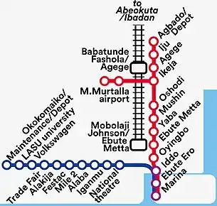 - «Lagos says blue, red rail lines will be ready by December 2022». Nairametrics (en inglés estadounidense). 25 de febrero de 2021. Consultado el 30 de enero de 2022.