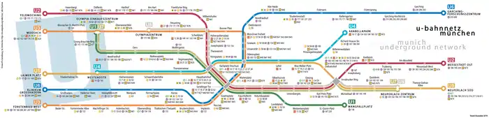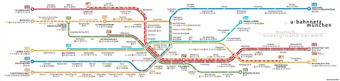 Junto con el tren de cercanías (S-Bahn de Múnich) conforma una densa red urbana de transporte que facilita los desplazamientos por la capital bávara. El U-bahn, junto con los tranvías y autobuses son gestionados por la Münchner Verkehrsgesellschaft (MVG) o Sociedad de Transportes de Múnich. La Münchner Verkehrs- und Tarifverbund (MVV) engloba todos los servicios de transportes de Múnich, esto hace que el viaje sea de título unificado.