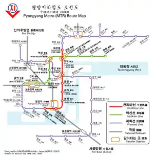 El Metro de Pyongyang (en chosŏn'gŭl, 평양 지하철; en hancha, 平壤地下鐵; romanización revisada del coreano, Pyeongyang Jihacheol; McCune-Reischauer, P'yŏngyang Chihach'ŏl) es un ferrocarril metropolitano que se extiende bajo el subsuelo de dicha ciudad, capital de Corea del Norte (llamada oficialmente República Popular Democrática de Corea). Cuenta con 17 estaciones que totalizan alrededor de 22 kilómetros de recorrido, distribuidos en dos líneas, Chŏllima y Hyŏksin (renovación) trazadas de norte a sur y de oeste a este, respectivamente.