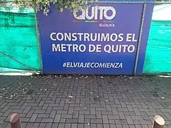 De esta forma continúan los trabajos del metro de la ciudad de Quito, cumpliendo con el cronograma de presupuesto, sin necesidad de contratos complementarios, ni reajuste de precios, manteniendo el monto original de 2009millones de dólares.[65][64] convirtió de esta forma a la capital del Ecuador en la décima de Latinoamérica con un sistema de transporte ferroviario metropolitano.[66] La inauguración del Metro de Quito estaba prevista para diciembre de 2019, sin embargo por retrasos e imprevistos y a fin de cumplir con el periodo de pruebas del sistema, se aplazó el inicio de operación para el último trimestre de 2020. Después de varios retrasos para asignar un operador, el Concejo Metropolitano de Quito finalmente adjudicó las operaciones del Metro de Quito al consorcio conformado por la empresa francesa Transdev y la empresa administradora del Metro de Medellín el 15 de julio de 2022 para su administración por los siguientes seis años.