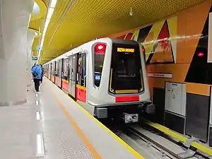 ![]() Tren de la línea M2 en la estación de Świętokrzyska. | ||