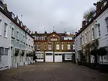 El término "Mews" se aplicó a las calles de servicio y a los establos de las ciudades, principalmente en Londres. En los siglos XVIII y XIX, las viviendas londinenses para personas adineradas generalmente consistían en calles de grandes casas adosadas con establos en la parte trasera, que se abrían a una pequeña calle de servicio. Las caballerizas tenían establos y una cochera en la planta baja, y el alojamiento para los sirvientes del establo en la parte superior. Por lo general, se trataba de otra hilera de establos en el lado opuesto de la calle de servicio, que daba a otra hilera de casas adosadas que daban a la siguiente calle. A veces había variaciones, como pequeños patios. La mayoría de las caballerizas llevaban el nombre de una de las calles principales cercanas a ellas. La mayoría, pero no todos, tienen la palabra "mews" en su nombre.