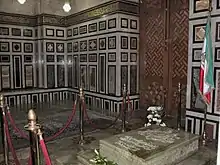 La mezquita es el lugar de descanso de Khushyar Hanim y su hijo Ismail Pachá, así como de otros numerosos miembros de la familia real egipcia, incluido el rey Faruq, el último rey reinante de Egipto, cuyo cuerpo fue enterrado aquí después de su muerte en Roma en 1965.[2] La mezquita sirvió brevemente como el lugar de descanso de Reza Shah de Irán, quien murió en el exilio en la Unión de Sudáfrica en 1944, y fue devuelto a Irán después de la Segunda Guerra Mundial. Fue enterrado en El Cairo después de la Revolución iraní de 1979.[4] Parte de la cámara funeraria está actualmente ocupada por el hijo de Reza Shah, Mohammad Reza Pahlavi, que murió en El Cairo en julio de 1980.