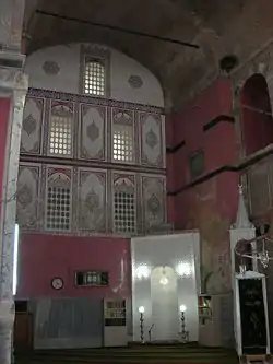 Una galería superior sobre el esonártex, siguiendo el plano de la iglesia del Pantokrator, se quitó en 1854.[1] También los pasillos norte y sur a lo largo de la nave fueron destruidos, posiblemente durante el siglo XIX. Los arcos triples que conectan los pasillos con la nave ahora son las ventanas más bajas de la iglesia.