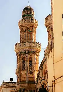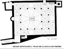 La mezquita fue reconstruida de nuevo en 1794 bajo el gobierno del dey Hassan a quien se debe su forma actual. La gran sala de oración se apoya en subestructuras abovedadas que compensan el terreno en declive.[4] Por lo tanto consta de una sala de oración cuadrada de 11,50 metros de cada lado, con una gran cúpula octogonal y una doble fila de galerías —similar a otra mezquita argelina: la de Ali Bitchin—. Estas galerías de arcadas frente al mihrab constituyen espacios tapados con cúpulas secundarias y están separados por dobles arcos y descansan sobre colgantes. Todos los arcos de forma sobrepasada están soportados por columnas importantes con grandes capiteles. La arquitectura general, poco común en el norte de África, recuerda a las mezquitas con gran cúpula central de Turquía.[4]
