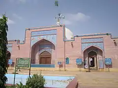 Es una mezquita única ya que no tiene minaretes aunque tiene un asombroso número de cúpulas, 93 domos, el más alto de cualquier edificación en Pakistán. A diferencia de otras edificacaciones de la era mogol, tampoco tiene arenisca rosada. Se hizo con materiales de áreas del Sunday como Hala (de donde se importaron los ladrillos). ÑLas dimensiones exteriores de la mezquita son de 105 × 30 m.
