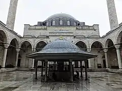 La mezquita fue construida en una terraza con vistas a la Cisterna de Aspar, el mayor de los tres depósitos romanos en Constantinopla. El gran patio (avlu) tiene un pórtico con una columnada de varios tipos de mármol y granito. La mezquita tiene paneles de azulejos coloreados que fueron decorados usando la técnica de la cuerda seca. Son similares a los paneles de la luneta sobre las ventanas a ambos lados de la chimenea en la Sala de la Circuncisión (Sünnet Odası) del Palacio de Topkapı y casi con certeza fueron hechos por el mismo grupo de artesanos iraníes que trabajaban para la corte otomana.[2][3] La mezquita está flanqueada por minaretes gemelos.