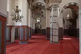 El interior de la mezquita, antiguamente la Iglesia de Pantocrátor. El piso bizantino en opus sectile se encuentra debajo de la alfombra.