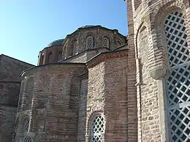 Tanto la iglesia norte como la iglesia sur tienen una estructura cruciforme cubierta con una cúpula con ábsides poligonales que tienen siete lados y no cinco, como era típico en la arquitectura bizantina del siglo previo. Los ábsides también tienen ventanas ojivales triples flanqueadas por nichos.[1] La iglesia sur, que es la más grande, tiene un esonártex que más tarde se extendió hasta la capilla imperial. Está coronada por dos cúpulas, una sobre el naos y la otra sobre el matroneum del nártex —una galería superior separada destinada para las mujeres—.