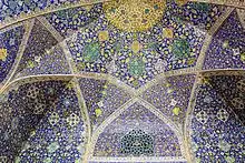 Además, los persas inventaron un nuevo estilo de mosaico de azulejos («el de siete colores») que era más barato y más rápido, y que eventualmente aceleró la construcción. Este trabajo fue magistralmente realizado por algunos de los mejores artesanos del país, y supervisado por el maestro calígrafo, Reza Abbasi. Al final, los toques finales de la mezquita se realizaron el año 1629, pocos meses después de la muerte del Sha.