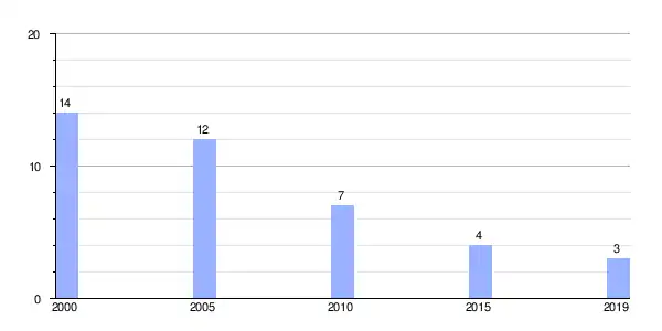 Gráfica de evolución demográfica de Miñide entre 2000 y 2019 |