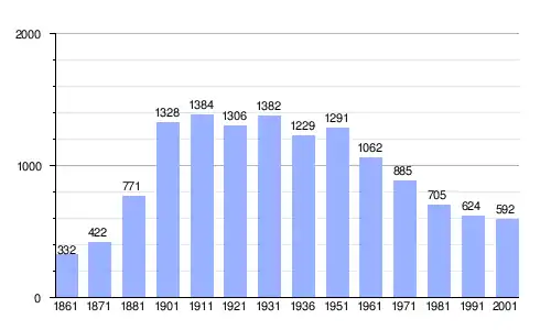 Gráfica de evolución demográfica de Miagliano entre 1861 y 2001 |