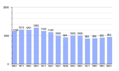 Gráfica de evolución demográfica de Miasino entre 1861 y 2001 |